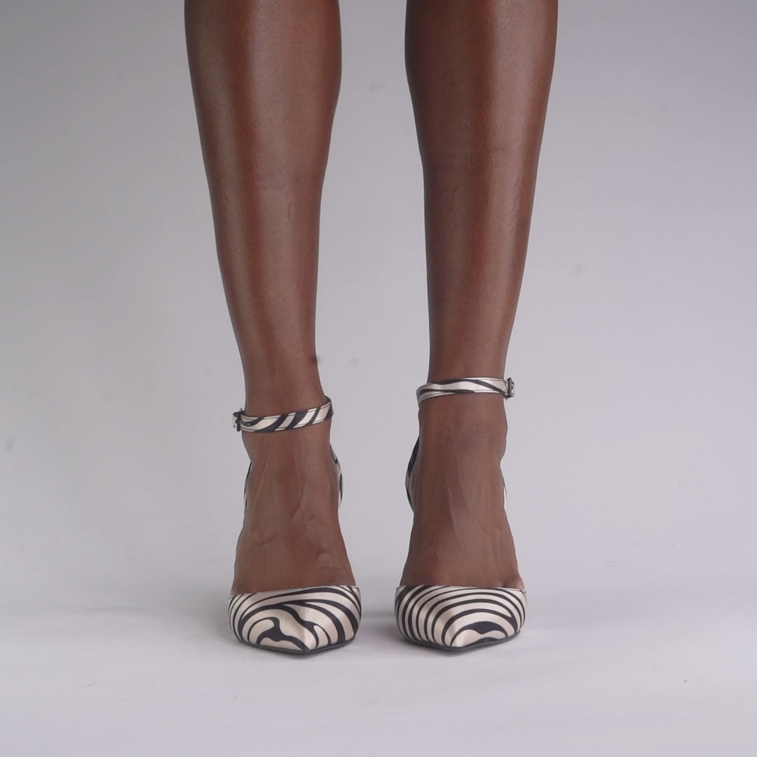 Elevate your look with the Zalta court heel. Crafted with contrasting zebra print satin, a smooth leather lining, and a... See More