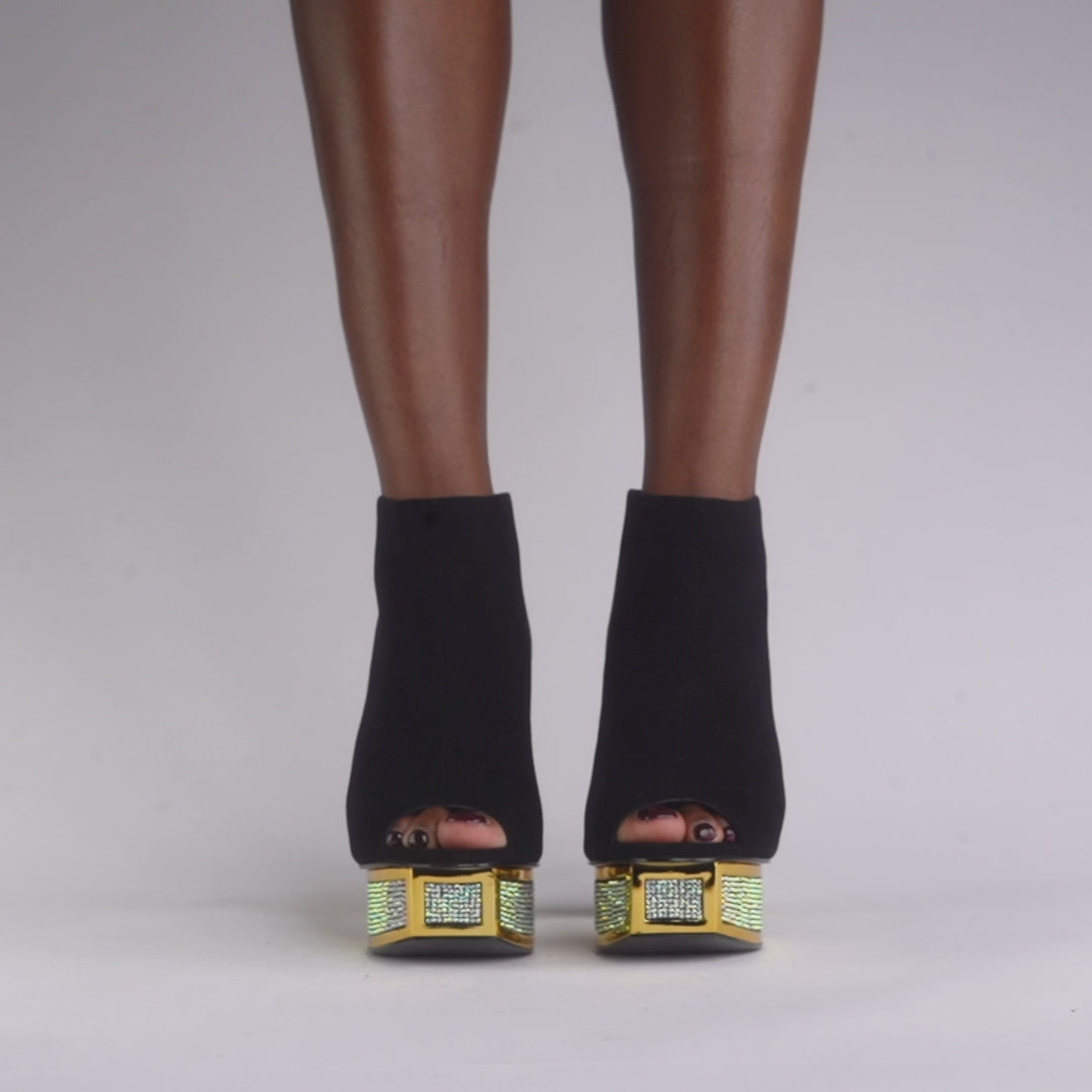 Velma Boots feature luxe suede, a peep-toe design, and a 125mm heel balanced by a 40mm platform embedded with... See More