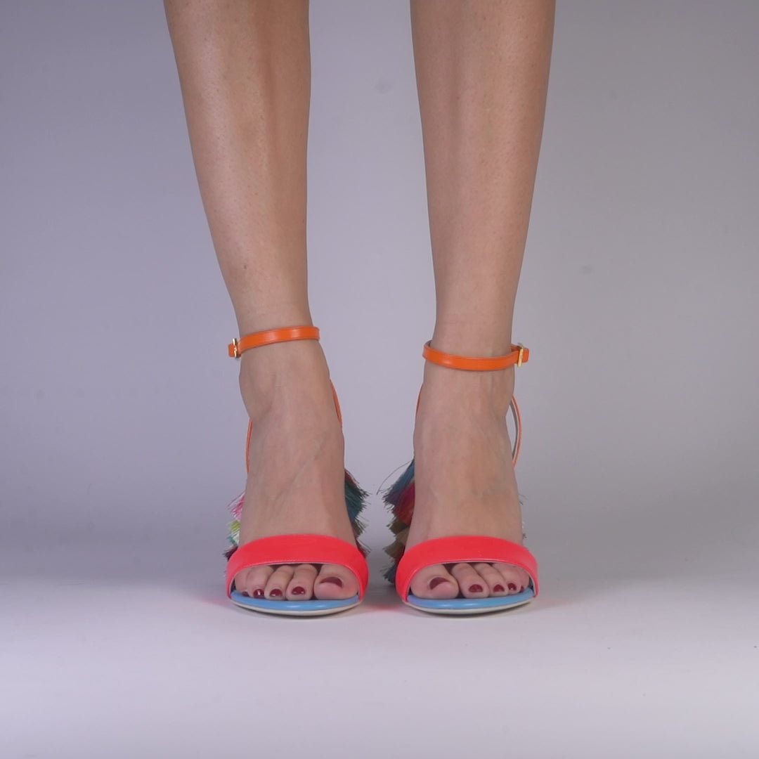 Be the life of the party this season with OLIVE SANDALS! Crafted from Sky blue leather with orange... See More