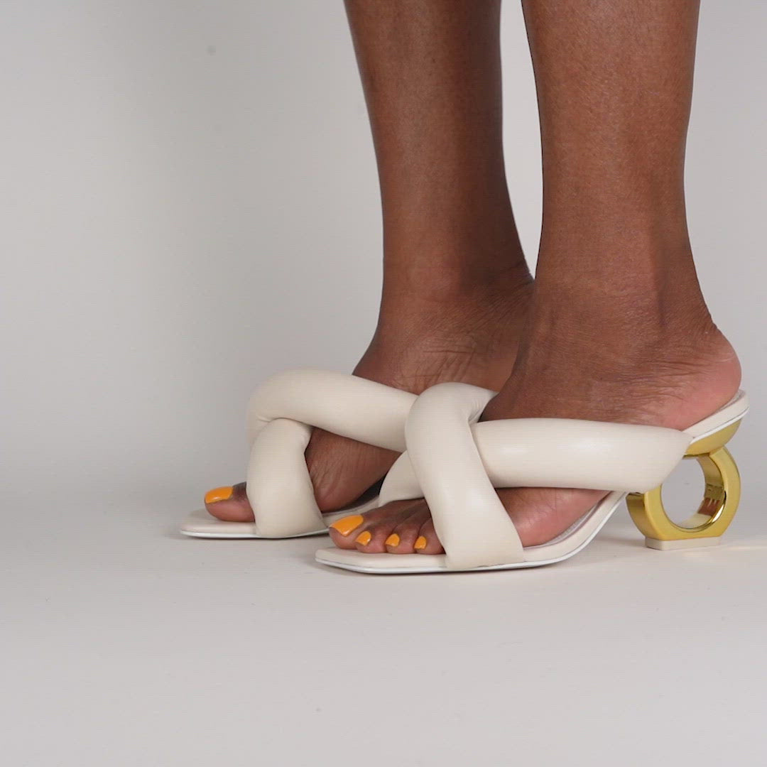 Everyday pleasures, elevated. The Itzel is crafted from white, ultra-soft leather with marshmallow-like detailing adding a plushness to our signature single-chain heel.... See More