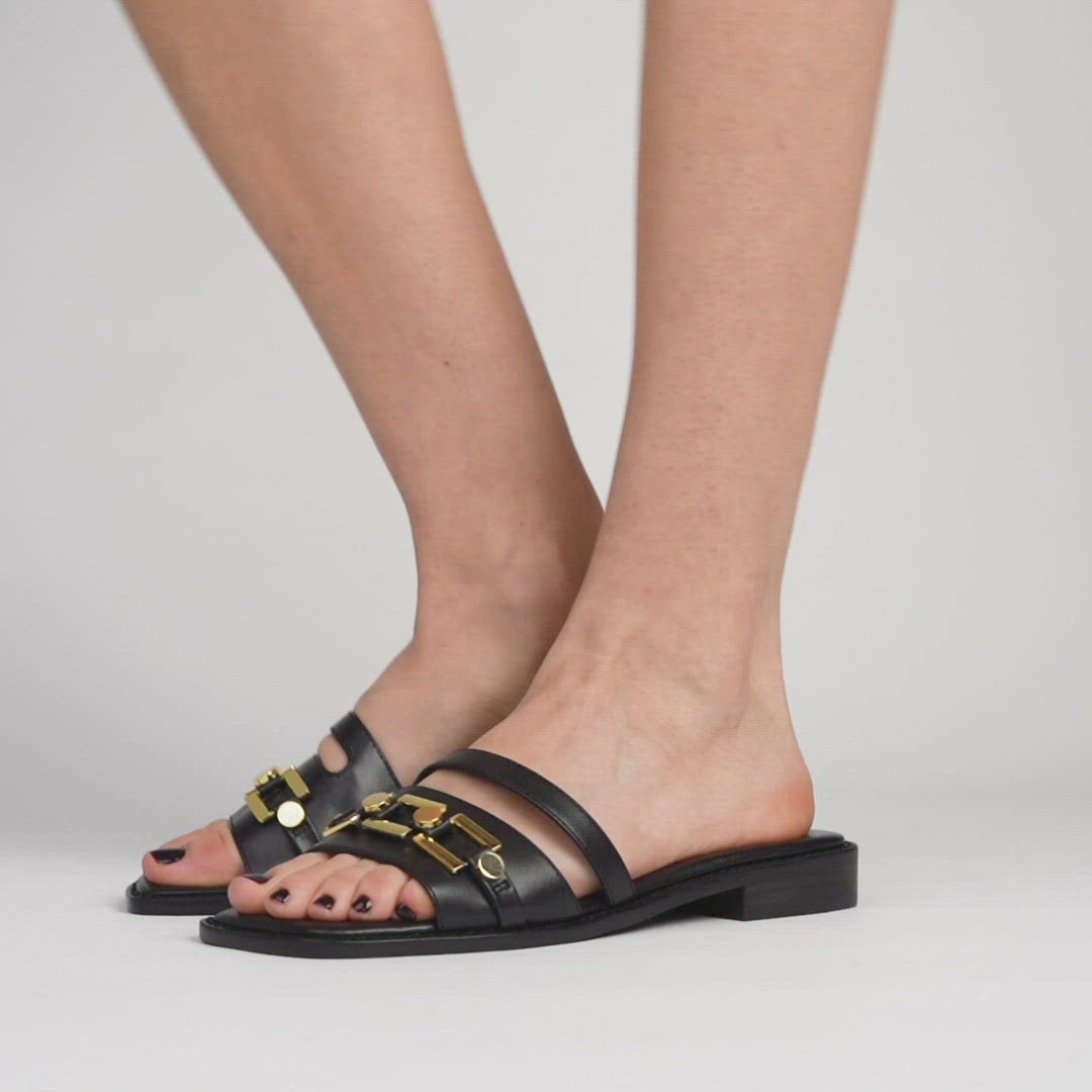 Making life admin more appealing, the Loa slider is everyday luxury for your feet. Crafted from soft black leather, run... See More