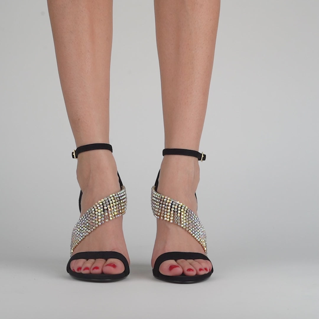 Mila makes a statement all right. This hourglass heeled sandal is crafted from black suede leather, with gold-toned fringe detailing... See More